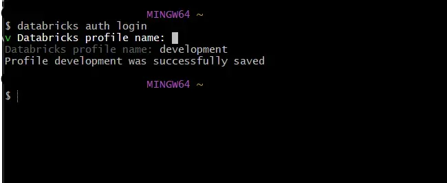 This initiates the login sequence based on your configured authentication type. Once authenticated, you can start using the CLI to interact with your Databricks workspace.