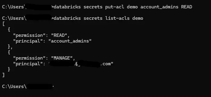 databricks secrets put-acl demo account_admins READ